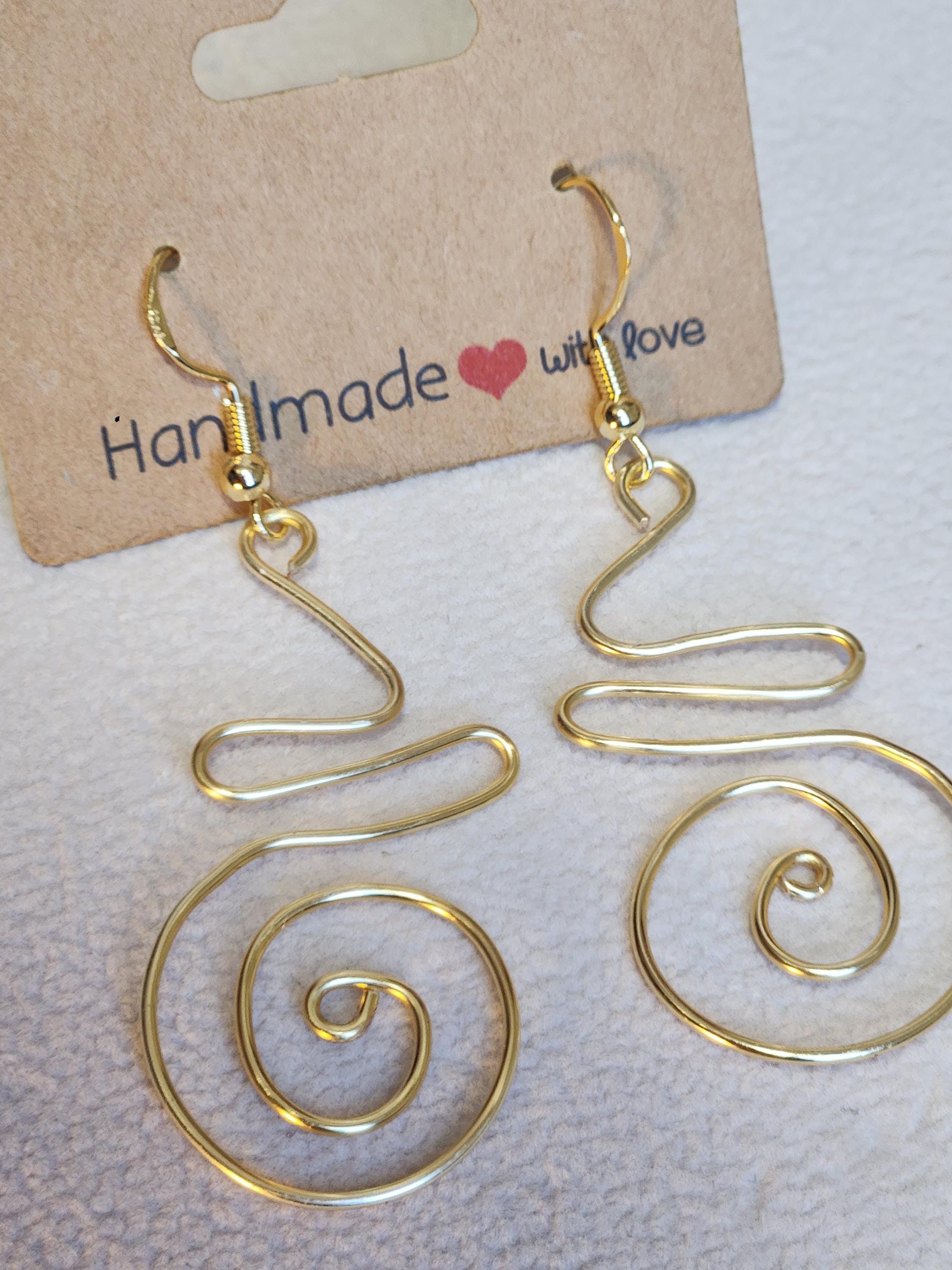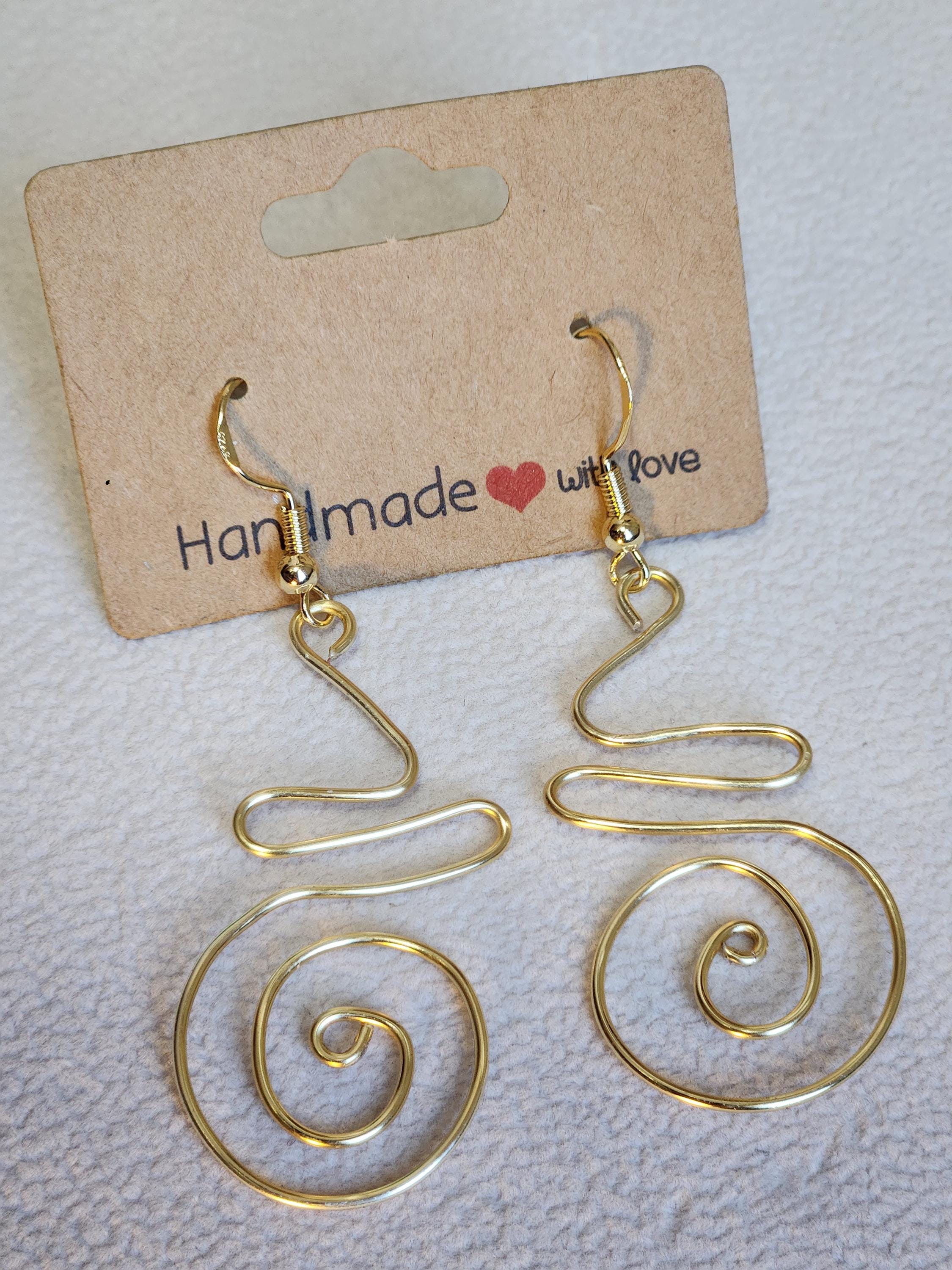 Unique Handcrafted Gold Wire Dangle Earrings