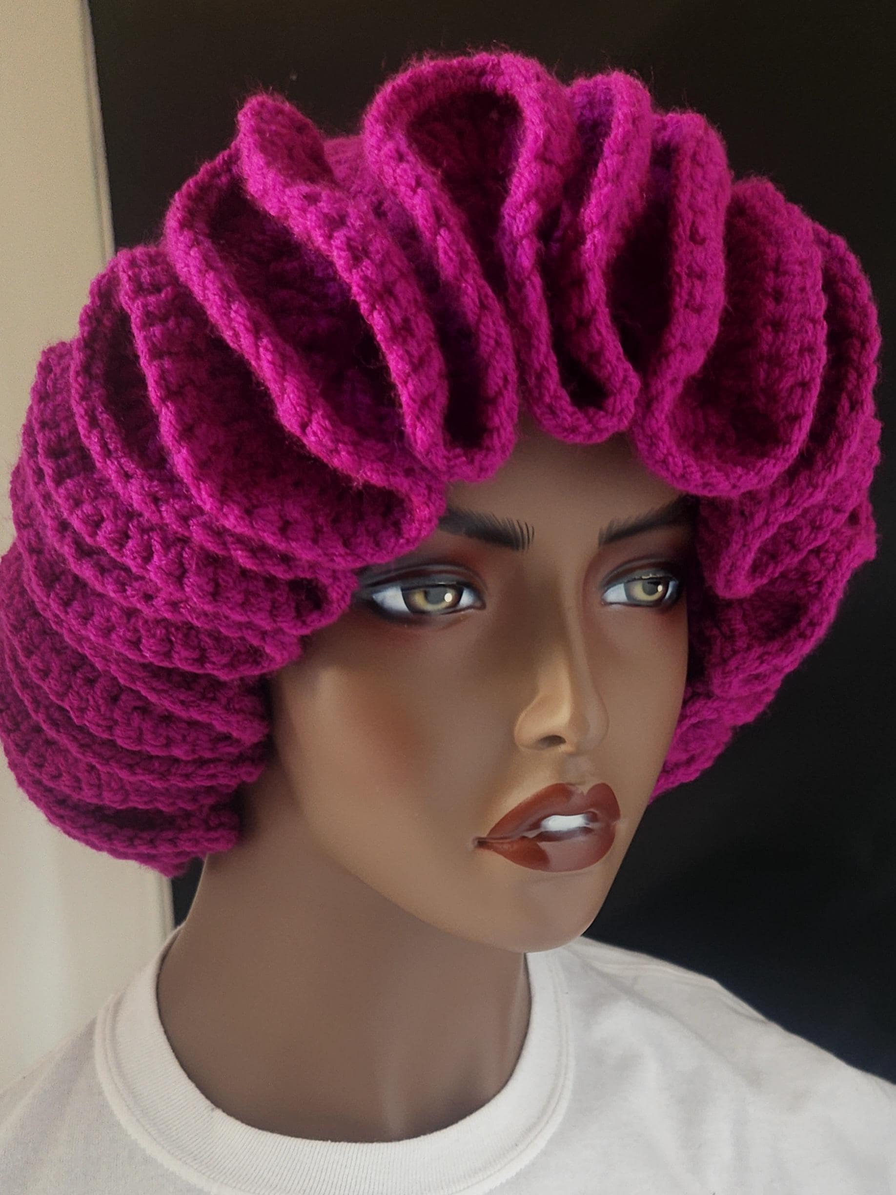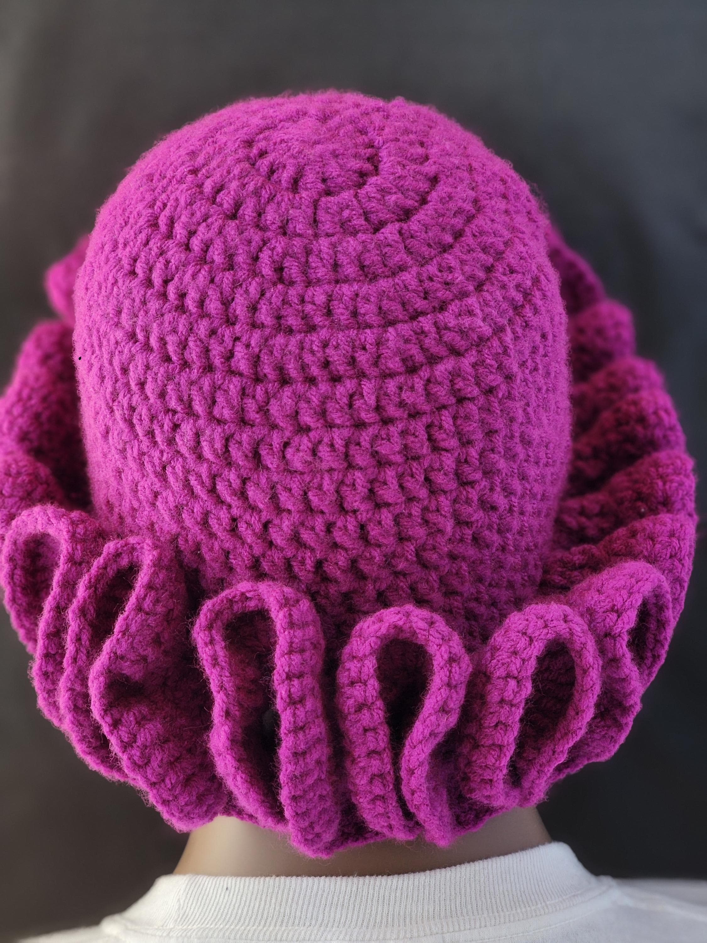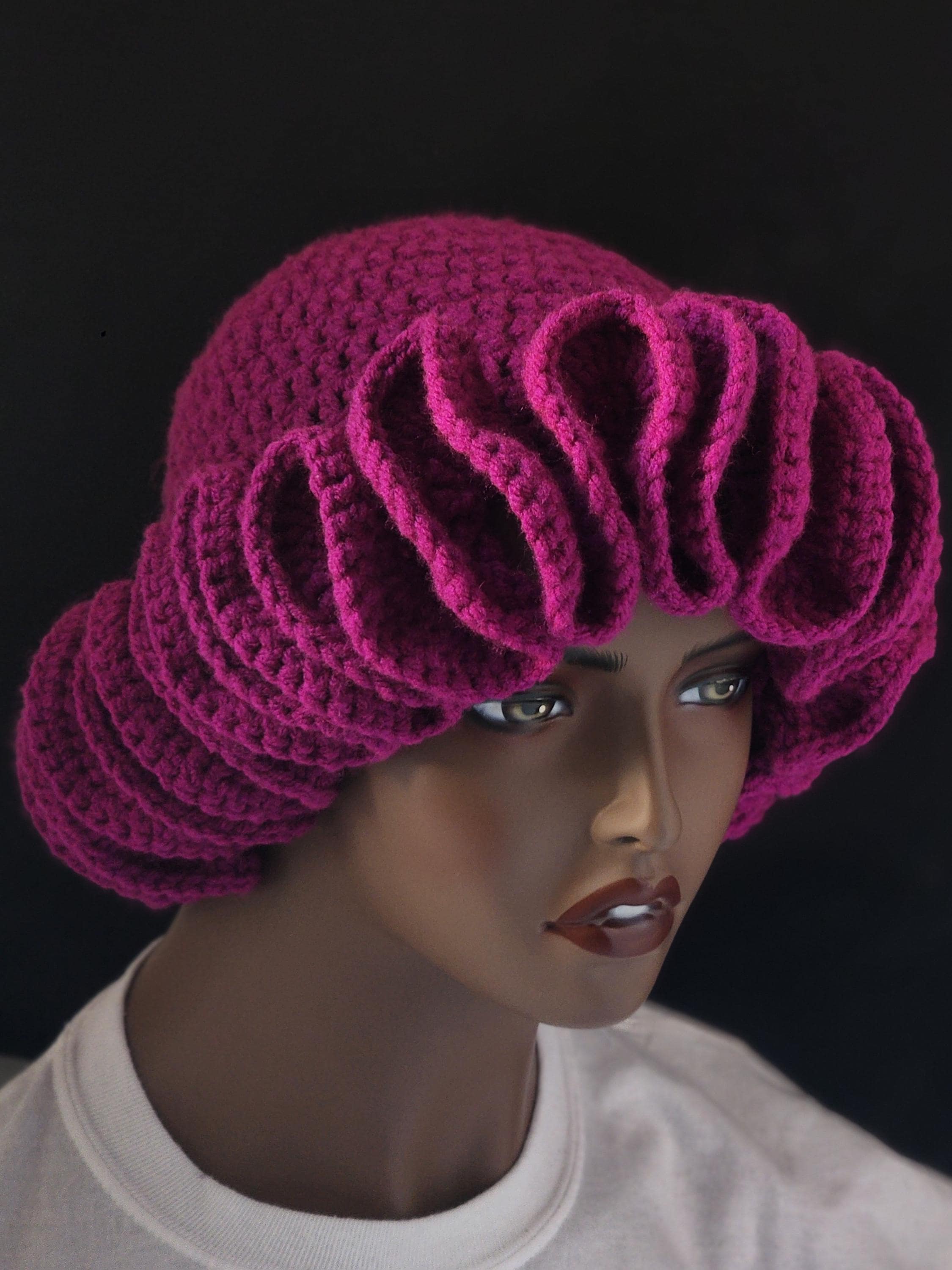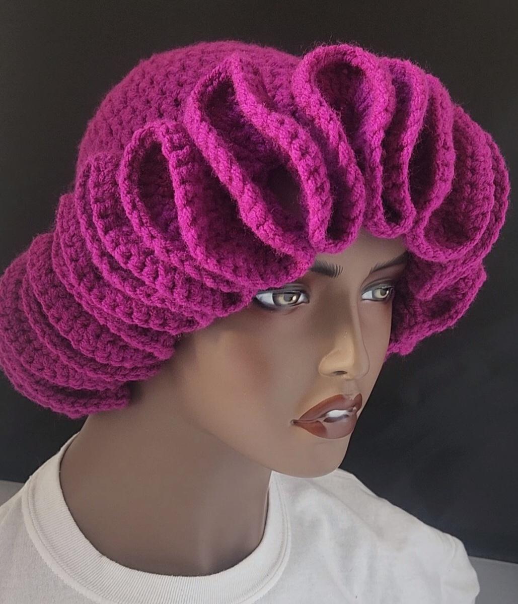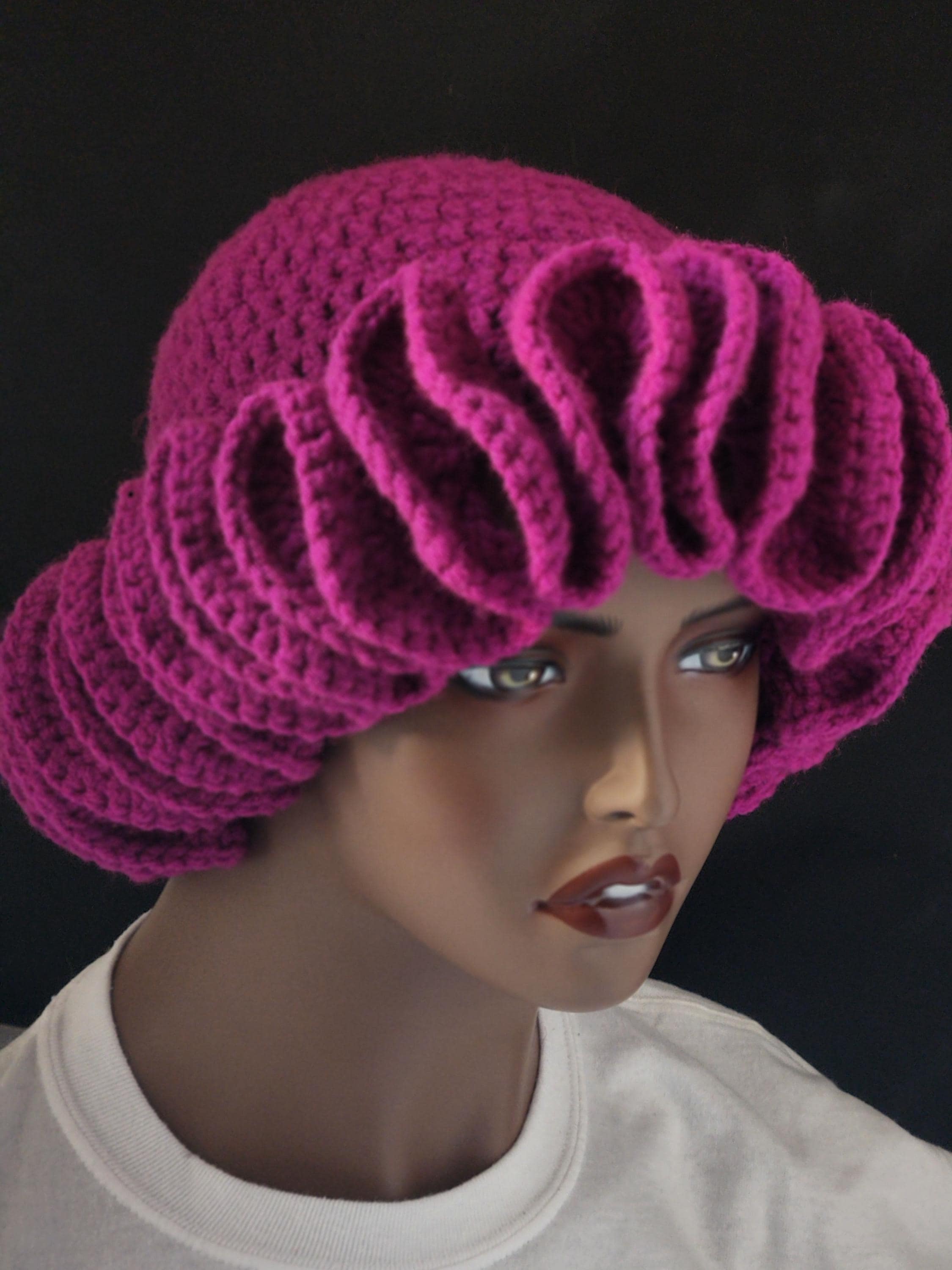 Step out in style with this beautifully designed hand-crocheted Raspberry Ruffle Hat/Bucket Hat.